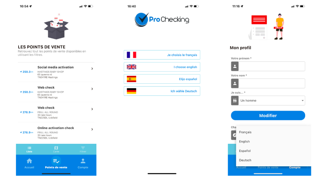 Vos équipes collectent les informations dans chaque magasin et enseigne demandés en les illustrant de photos : l’application est multilingue (français, anglais, espagnol et allemand) et peut être utilisée par toutes vous équipes peu importe leur localisation géographique.