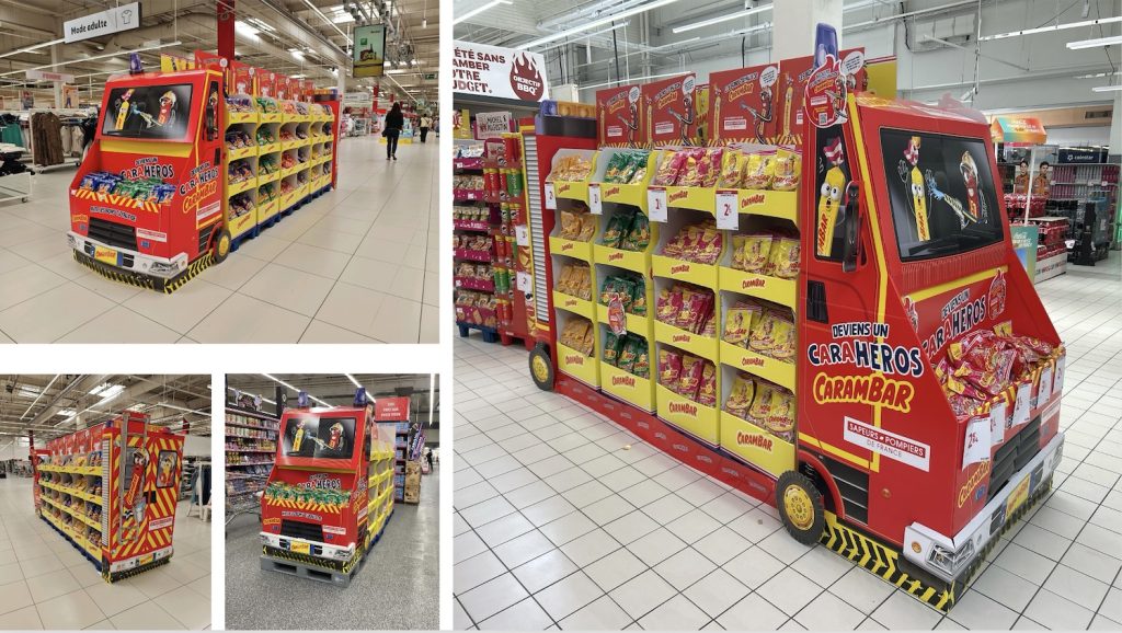 En magasin, Carambar mise sur des MEA spectaculaires comme son célèbre camion de pompiers, véritable aimant à consommateurs.