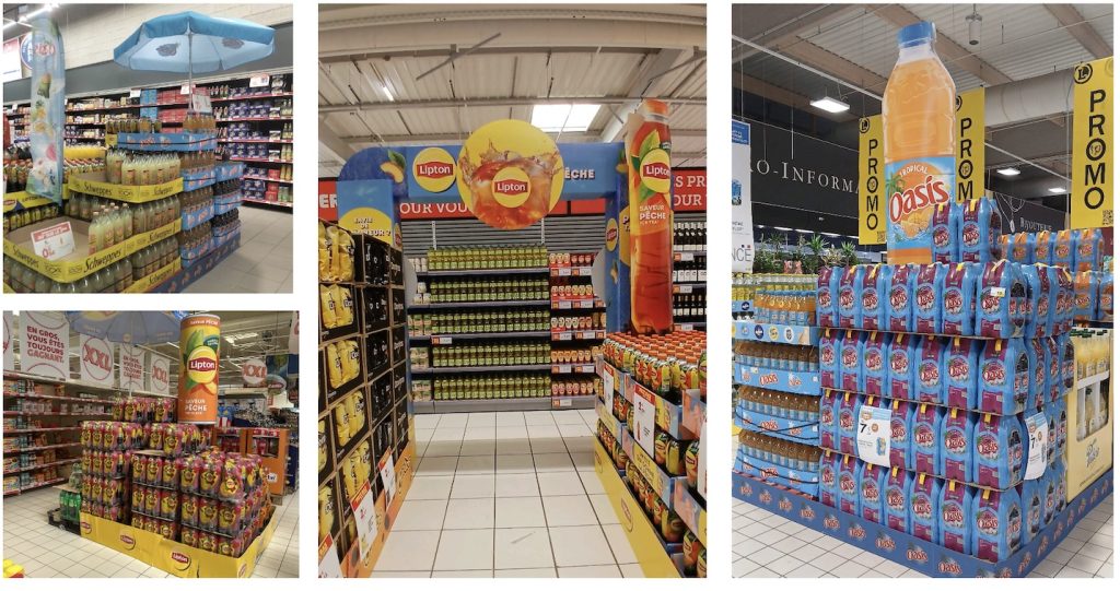 🍑 Bouteilles géantes, parasols et arches colorées : Lipton, Schweppes et Oasis installent l’été directement dans vos rayons.